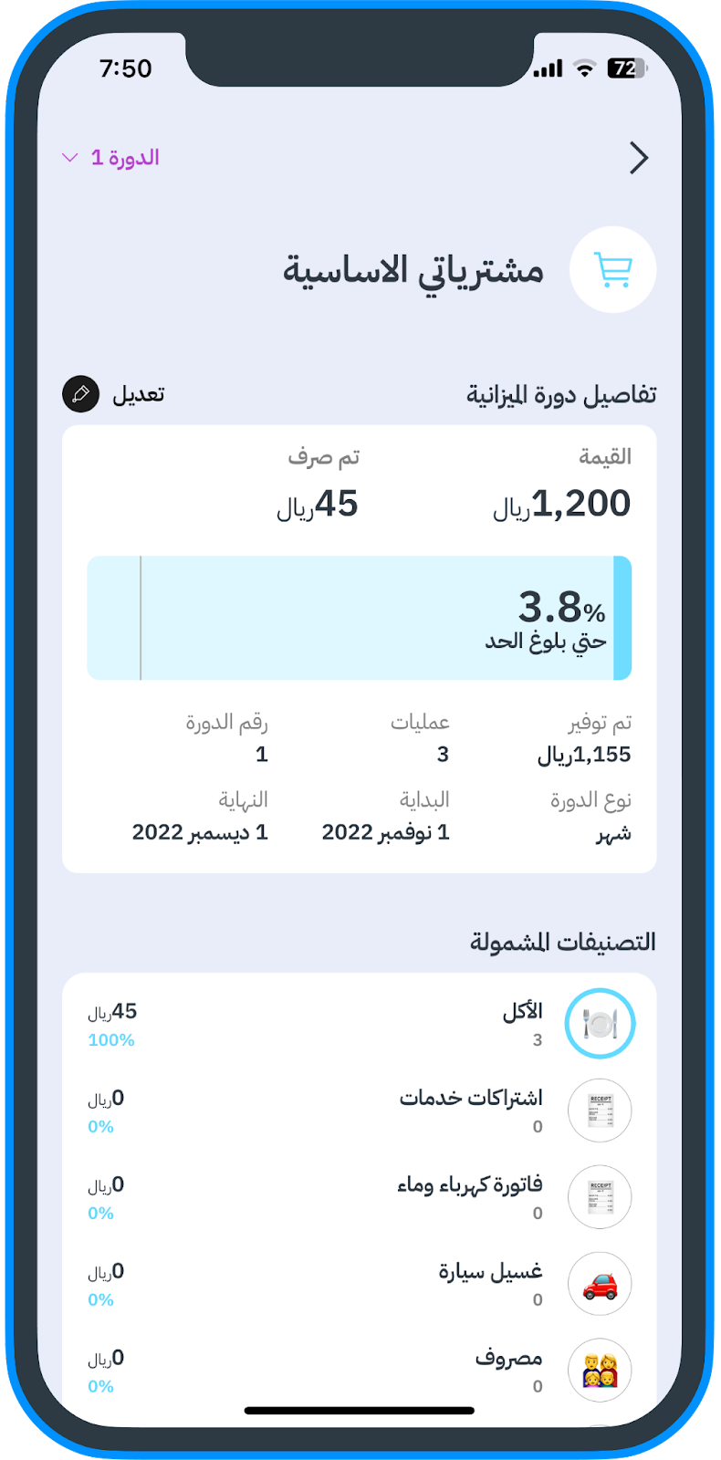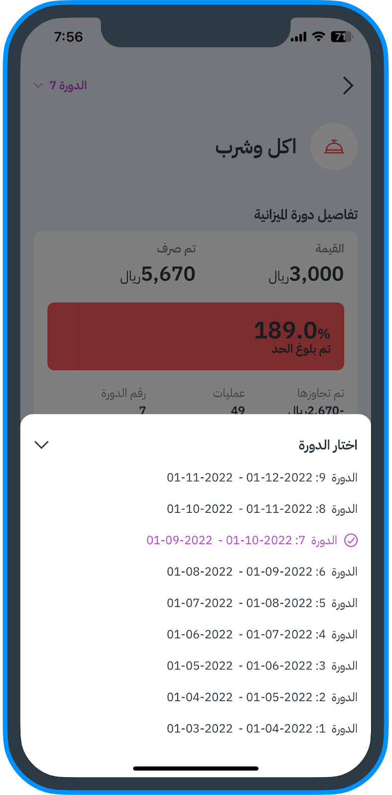 أيضاً باستخدام الدورات السابقة بإمكانك الرجوع والتأكد تاريخياً من أدائك وتكوين صورة أفضل عن نفقاتك: